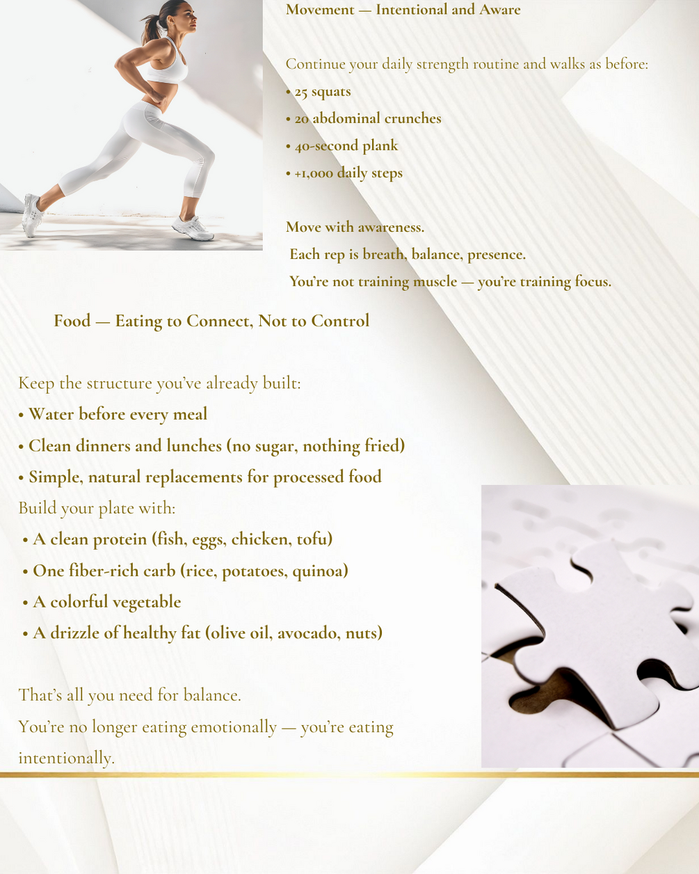 ā Weekly Nutrition Frameworks ā balanced, easy-to-follow meal structure for stable energy and hormone support ā Mindset Prompts & Habit Trackers ā stay focused, motivated, and accountable each day ā Movement Guidance ā flexible routines suitable for beginners or those restarting fitness ā Reflection Pages ā celebrate progress, track improvements, and reset intentions weekly ā Practical Guides ā grocery essentials, hydration planner, sleep reset checklist, and stress-balance strategies ā Bonus Section: Confidence Rituals ā daily practices to boost self-esteem and presence